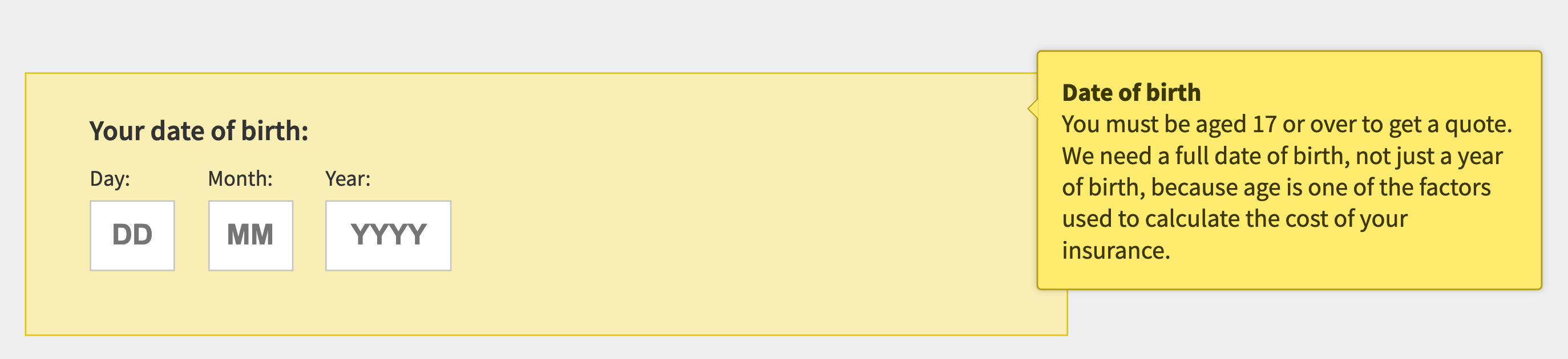 The information required is pretty straightforward (the day, month and year of your birth) but even when asking for these three pieces of information there can be a variety in how it’s requested.