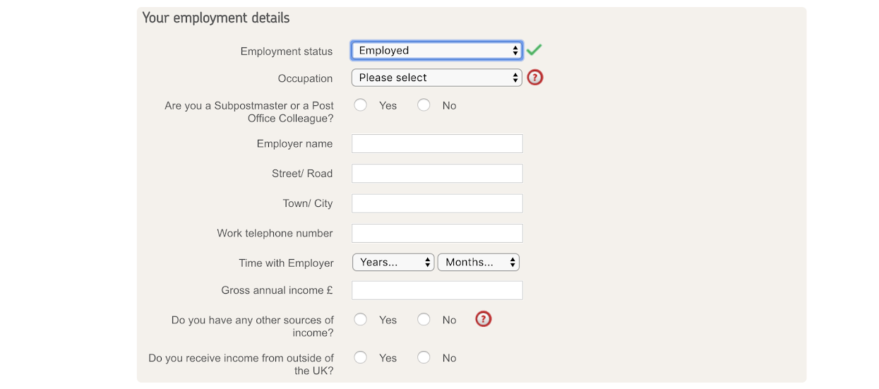Halifax also has a different approach to asking for Job Title (listed under Occupation instead), and rather than a free text box with a look up functionality, has a drop down list with fewer options: